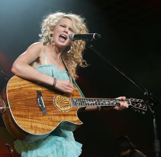 Taylor Swift começou sua carreira com um som country adolescente, com hits como "Tim McGraw" e "Teardrops on My Guitar". No entanto, ela se reinventou completamente com 1989, onde mergulhou no pop eletrônico e no synthpop. Depois, em Folklore, ela retornou ao indie folk, explorando um som mais introspectivo e melódico.